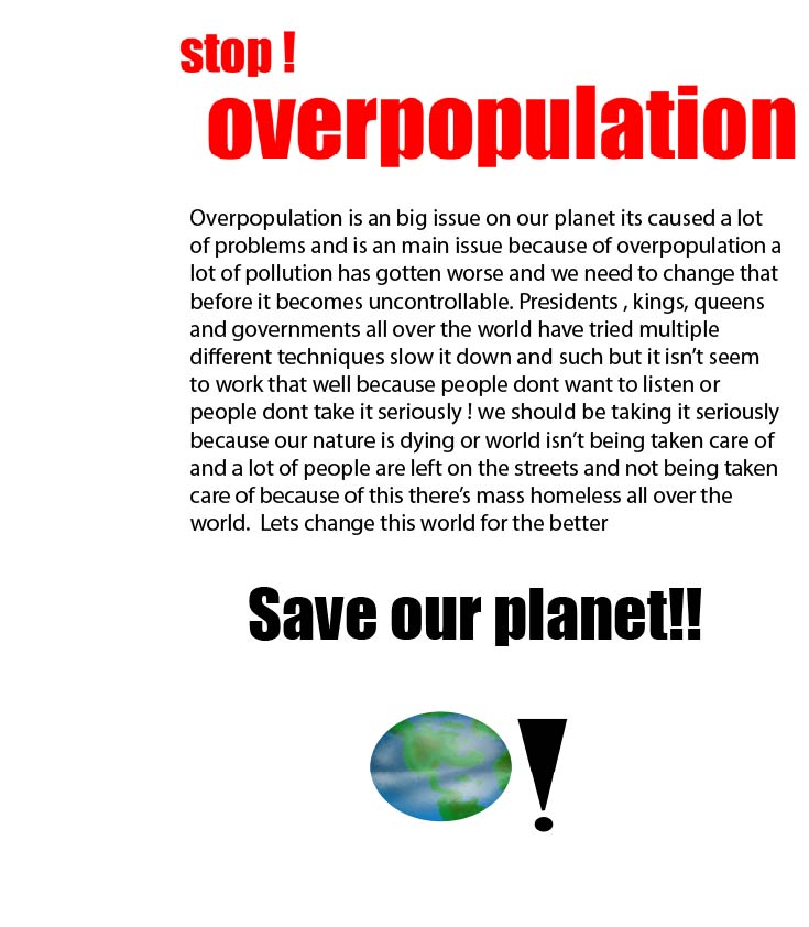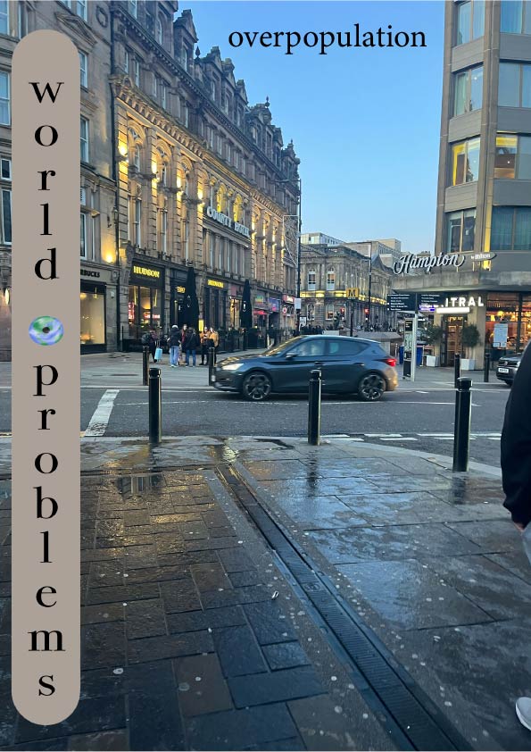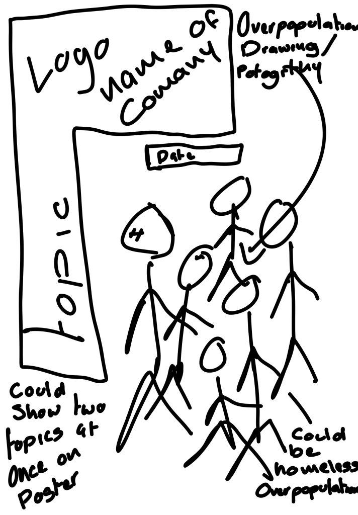 On my third assignment the topic was about overpopulation and doing poster / magazine covers so we had to make name logos and such also do a lot of sketches and information pages about the topic on the name logos I did multiple different styles and forms of the logo to add some range of the logos and my favourite one is world. Problems but the ‘o’ is an earth and the ‘l’ is an chimney from air pollution its quite colourful and interesting because even though it says what its about in the name It gives it colour and a bit of extra detail to the name logo I also did an more simple one of the same logo what I was recommended to try by Robert and its nice but I don’t think it gives much attention to the poster and in the information pages I used a chunky like font to scream DANGER or IMPORTANT INFORMATION and when people hear that they automatically think oh no we need to look I also added drawings in the information pages to give a positive hope to the information pages , the last part of this project was the posters and I did three covers one drawn two photography I felt like photography was an good aim on these posters so we could show people how the public is and how over crowded it is I also loved the drawing one that I did its simple blunt but it also gives off an powerful energy to all the work i did on this projects I used a lot of sketches even some of them I never used but its good to sketch what comes to your mind even if you don’t take it any further