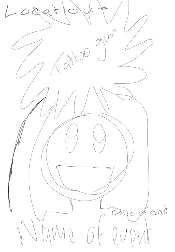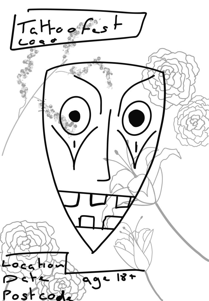 At the start of this assignment, I started with sketches on ideas for different styles on posters for the event I did a few just to try out different ideas on one of them I did a tattooed women but cartoony like sketch. I didn’t use this because I thought it didn’t fit in with the sort of feeling and welcome I was going for. I also did a floral like background with a tribal mask for a background on the festival, but this event poster didn’t make much sense to me, and it didn’t go with the theme I choose. the third poster sketch I did was meant to be an cartoon theme of a yellow man holding a tattoo gun in the air like some sort of god although I liked this idea, I wasn’t completely sure on using it because the same sort of style is used quite often in a lot of cartoons and such and it doesn’t feel unique because of that. I also have the sketch of the result poster I felt like it had uniqueness to it, and it went with my theme and style of the event.