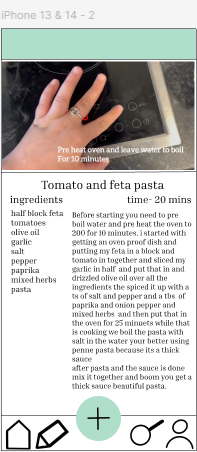 The navigation bar at the bottom of the page is the most useful part of the app because it takes you to all different parts of the app in just a press of a button , the designs on the navigation bar are simple an house for home an pen for writing as typing or talking , an pan for cooking and a person for profile.